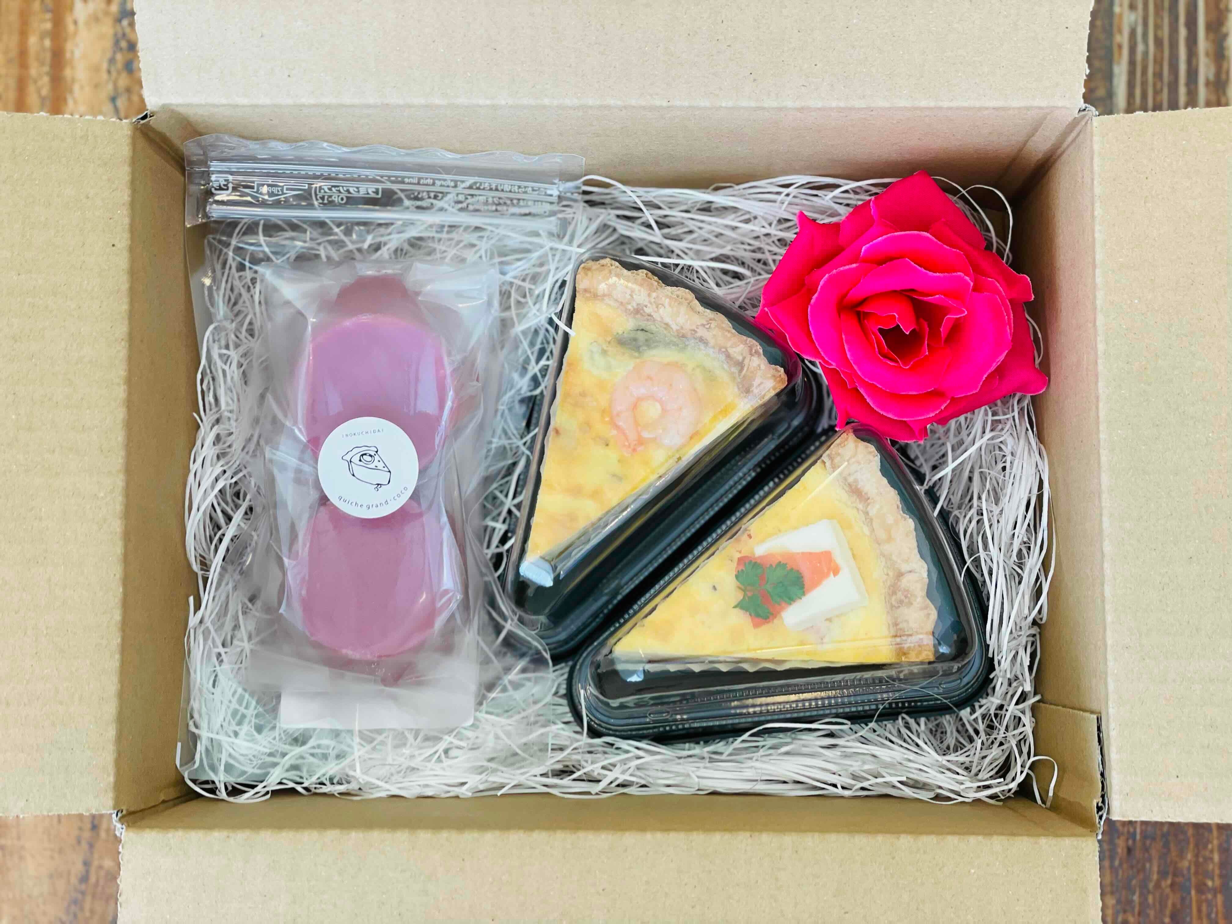 いつまでも綺麗でいたいお母さんに、栄養たっぷりビーツのポタージュとグランココで女性に人気のキッシュ2つをご用意しました。